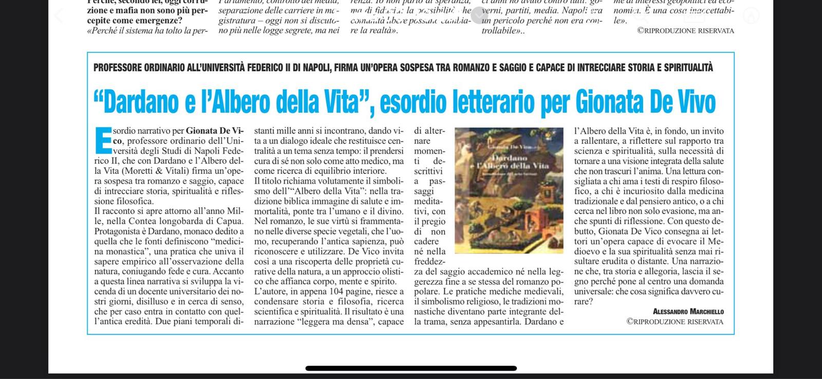Il racconto, ambientato intorno all’anno mille nella Contea longobarda di Capua, narra le esperienze del monaco Dardano, per il quale la medicina è soprattutto la faticosa riscoperta dei frammenti del biblico “Albero della Vita”, le cui proprietà curative, un tempo concentrate in un’unica pianta, Dio avrebbe redistribuito, dopo la caduta di Adamo, nelle migliaia di specie vegetali rimaste a disposizione dell’uomo e degli animali per nutrirsi e per curarsi.